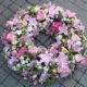 La couronne romaine est un arrangement funéraire de forme ronde qui se pose à même le sol, à côté du cercueil. C’est un arrangement qui représente un volume et un graphisme doux.